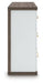• Dresser with two-tone finish (dark brown finish over replicated walnut grain; matte white finish)