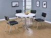 With distinctive styling and classic appeal, this vintage-inspired chair completes your dining ensemble in style. Its rear legs are gracefully curved for sturdy support, while its front legs are more subdued with a subtle, tapered design. With a shining chrome frame, this chair lends vintage inspiration to enhance any dining experience. Its comfy cushion is available in two gorgeous shades. You can choose vibrant red to punch up your decor with a splash of color, or opt for a more subtle black cushion for simple, subdued comfort.